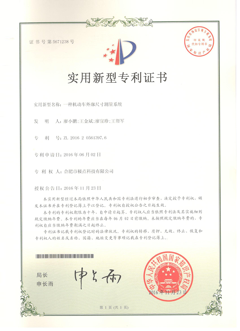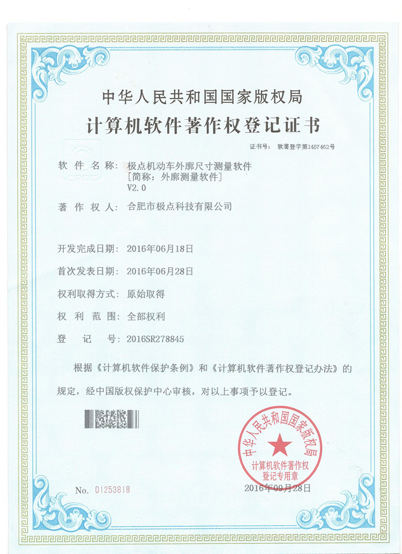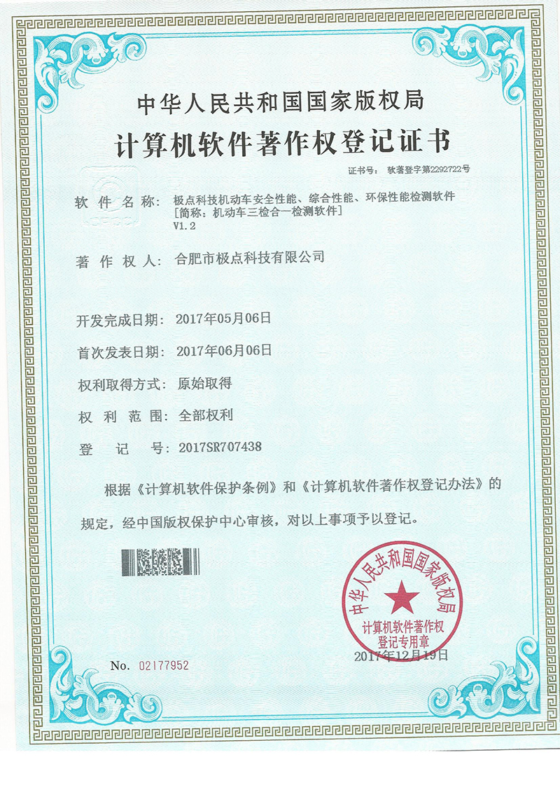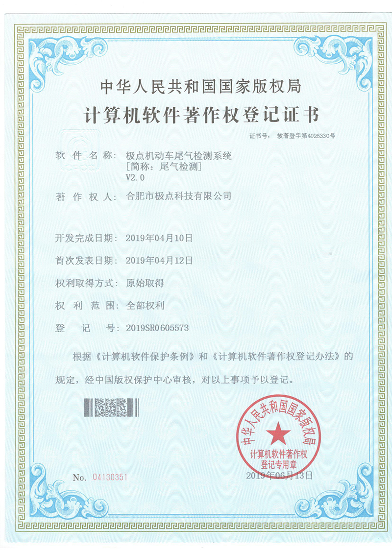 合肥市極點科技有限公司位于科教名城合肥市。是一家專注于機動車檢測系統(tǒng)的研發(fā)與銷售的高科技公司。產(chǎn)品涵蓋機動車檢測設(shè)備、圖像識別、人工智能、環(huán)保檢測、工業(yè)自動化等方面,廣泛應(yīng)用于公安、環(huán)保、交通、教育、汽車生產(chǎn)與維護等領(lǐng)域。公司產(chǎn)品擁有多項發(fā)明專利和實用新型專利以及數(shù)十項軟件著作權(quán)。