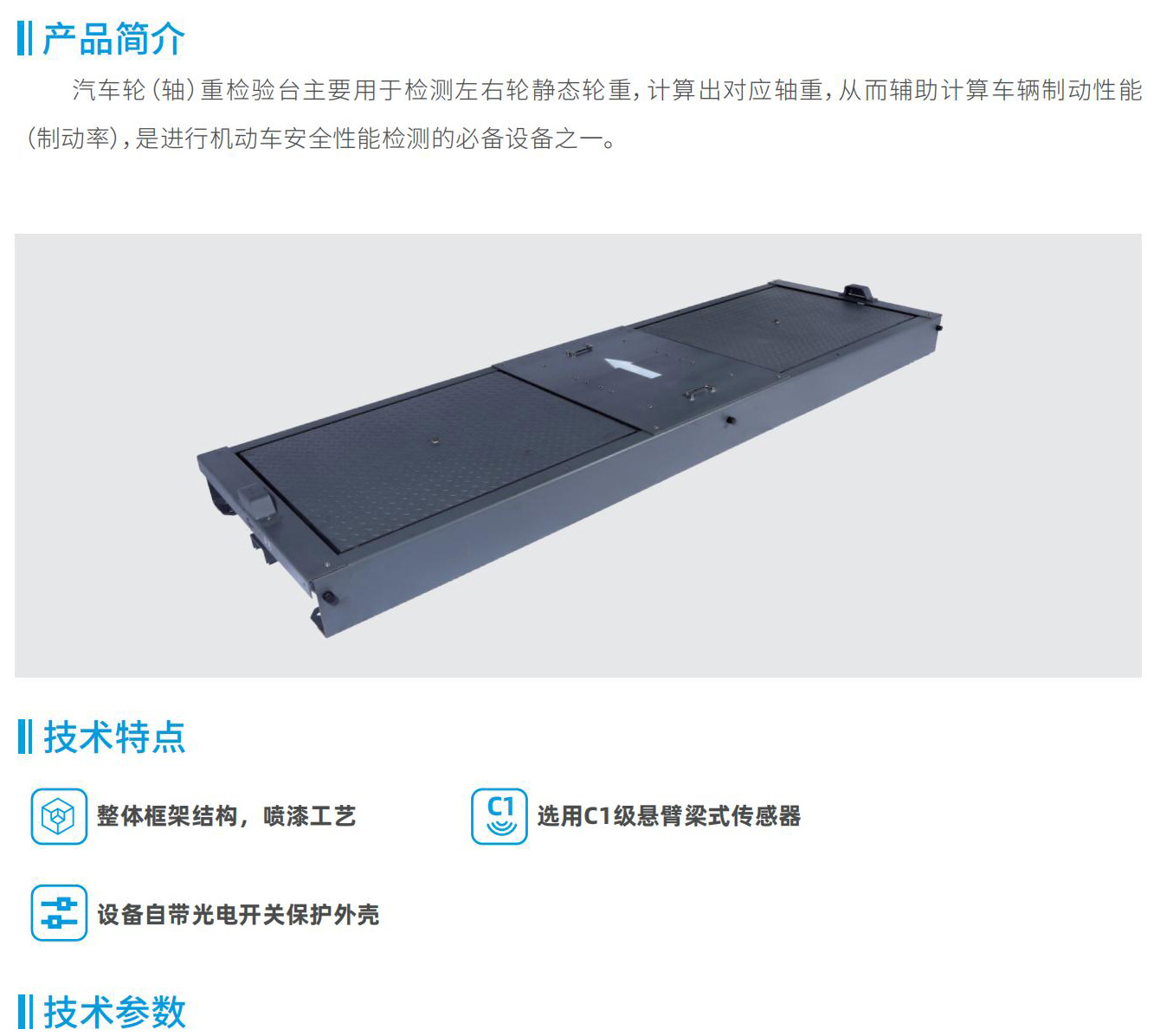 汽車輪(軸)重檢驗臺主要用于檢測左右輪靜態(tài)輪重,計算出對應(yīng)軸重,從而輔助計算車輛制動性能(制動率),是進(jìn)行機(jī)動車安全性能檢測的必備設(shè)備之一。